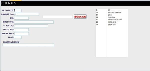 Me encantaría que me ayudaran. Lo que quiero es pinchar el nombre de la lista y que salga en el campo del nombre o también querría que fuese un formulario de solo buscar con su lista, y al pinchar el nombre que fuera a otro formulario de clientes.