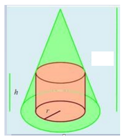 Volumen de un cilindro inscrito en cono en función del radio del cono