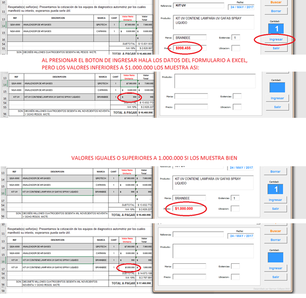 Al halar de un formulario un valor inferior a $1.000.000 lo muestra incompleto