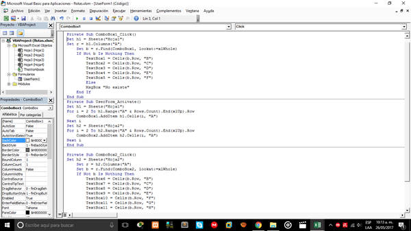 El primero funciona de manera correcta, me arroja los datos de manera automática de mi "hoja1" pero el segundo Combobox no realiza su función y los datos que necesito que arroje son de la "hoja2"