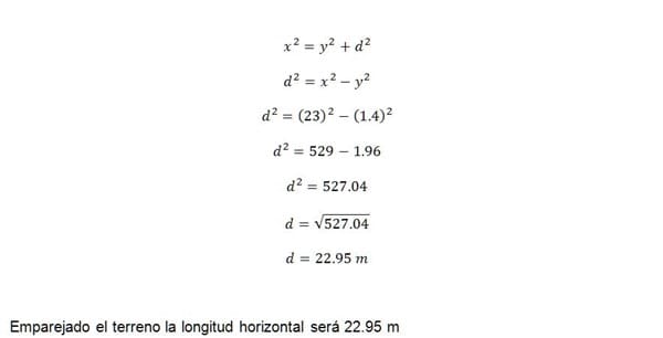 - Determina la longitud horizontal del terreno después de ser emparejado. Longitud “d”