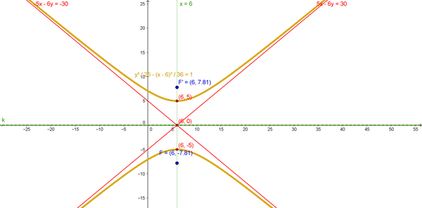 Encuentre la ecuación de la hipérbola que satisface que el centro es (6,0)