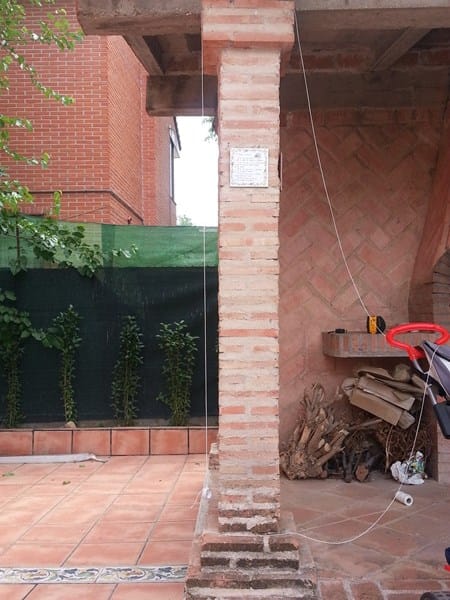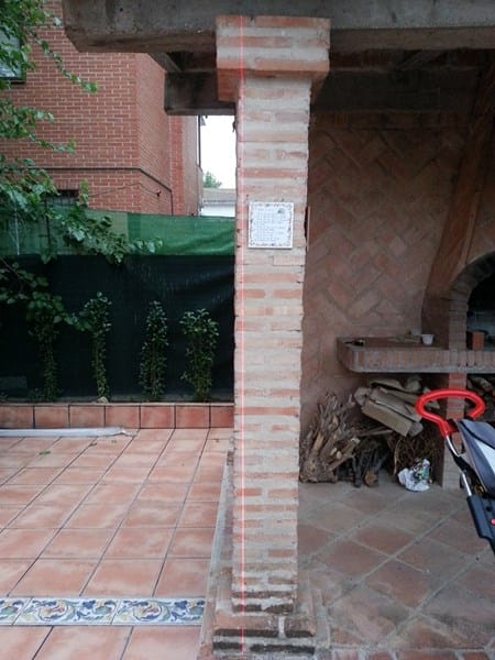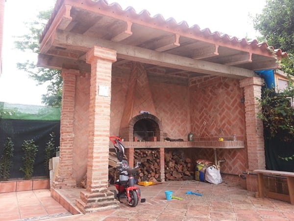 Es una barbacoa de obra con 3 pilares, 2 vigas y forjado. No es que me encante pero como estaba en la casa tampoco iba a tirarlo. Los vecinos me dicen que se construyó hace 20 años, en el ayuntamiento me han dicho que no figura la reforma y yo tengo varias dudas, aparte del retranqueo, uno de los pilares está torcido.
