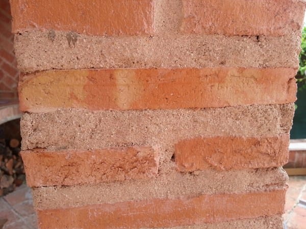 No creo que sea debido a movimiento porque los otros pilares están bien aplomados. El mortero del pilar se encuentra en buenas condiciones y no se aprecian grietas ni fisuras.
