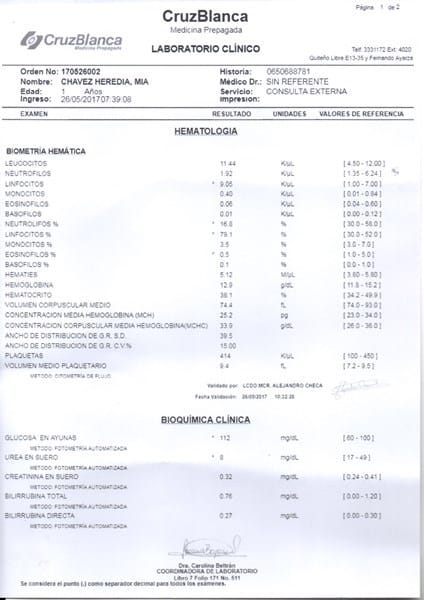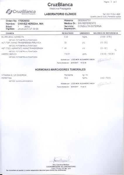 Resultados de Exámenes de Sangre de mi hija de 1 año