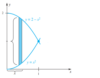 Hallar el volumen del sólido generado al hacer girar en torno al eje y, la región en el primer cuadrante que está por encima de la parábola y=x2 y por debajo de la parábola y=2-x2 (ver figura). El volumen se expresa en unidades cúbicas.