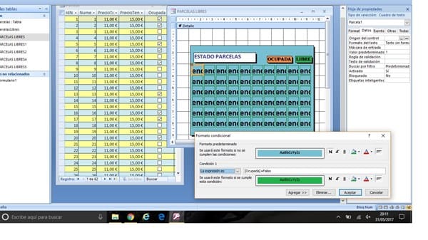 Sigo sin conseguir que el textbox me cambie de color según si la parcela está libre o no.