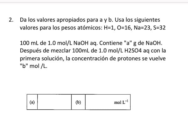 Como el volumen es ahora 100 + 100 = 200 mL, la concentración de protones será
