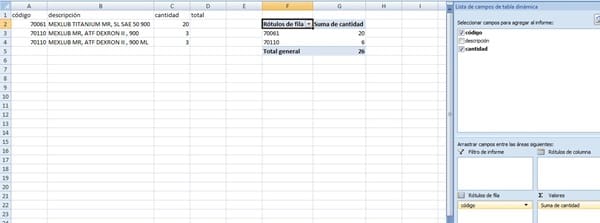 Como puedes ver hay dos artículos que que tienen un mismo código y lo que quiero es que de ese mismo código que se repita me los sume la cantidad que tiene de artículos.