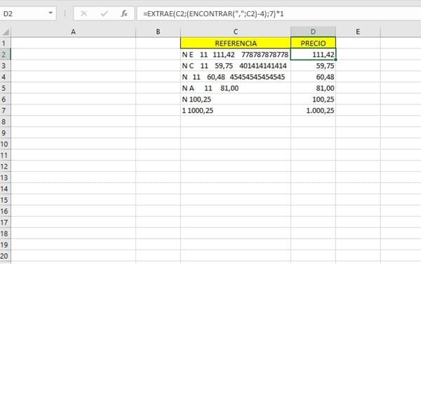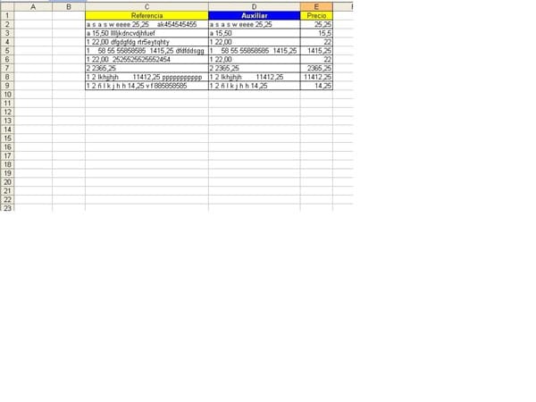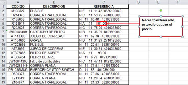 Tengo una hoja con más de 50.000 registros y con una columna de "Referencia", cuyas celdas son varios elementos separados por espacios y de la que debo extraer un valor en especifico: