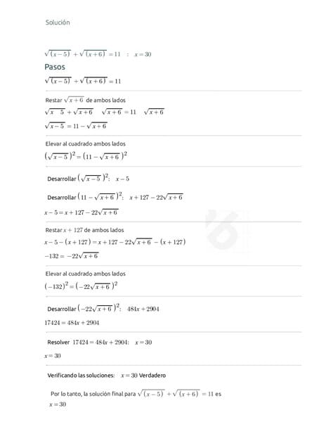 5) ¿Cuántos años tiene una persona, sabiendo que la raíz cuadrada de la edad que tenia hace 5 años más la raíz cuadrada de la edad que tendrá dentro de 6 años suman 11?