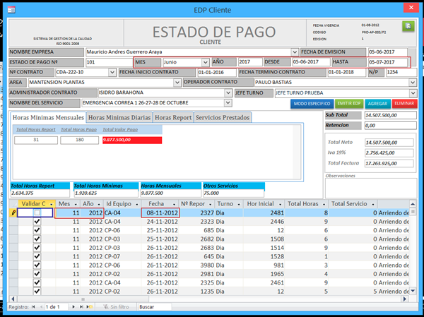 Por lo tanto lo que yo espero lograr con esto, que al ingresar la información en el formulario principal a su vez filtre la información requeridaen el subformulario, ya que, solo me quedaría validar con el campo "Validar campo", para yo así generar el informe