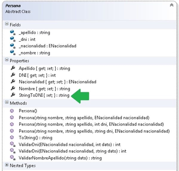 Tengo un problema con una propiedad, que devuelve un string. Pero el problema es que no veo la necesidad, ya que el nombre de la propiedad si la traduzco se llamaría "Cadena a Dni", es decir, pasar de un tipo string a un tipo int. La verdad es que no entiendo lo que quiere llegar hacer esta propiedad.