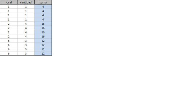 El ejemplo, suma la columna "cantidades" que tiene cada local.