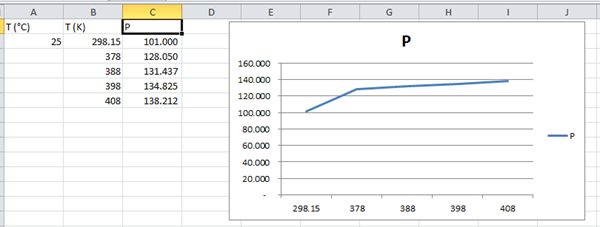 3. Calcula la Presión (Pa) en función de la temperatura en K