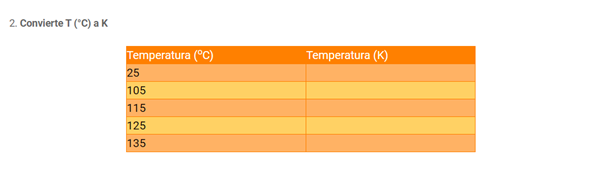 2. Convierte T (°C) a K