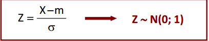 Aqui se puede ver lo que digo. Sin embargo, en este caso, la variable es Z y no nuestra X y además la media es 0. Así que se hace un cambio de escala donde modificamos nuestra variable X para que nos de en función de Z y esta la tenemos tabulada. La formula para este cambio es: