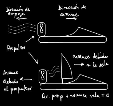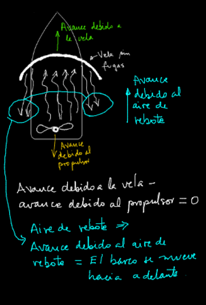 Un bote a vela se encuentra detenido en medio de un lago debido a la ausencia de vientos . El botero decide salir de esta situación soplando sobre una vela con una fuelle. Explica con fundamentos si puede ponerlo en movimiento