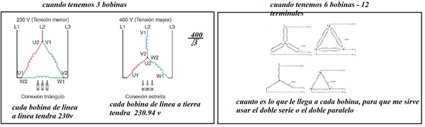 Como calcular que voltaje, reciben las bobinas en conexión doble estrella triangulo, en paralelo y en serie.