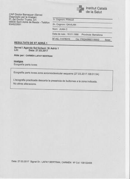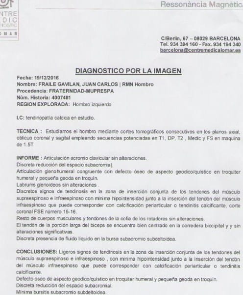 Las pruebas realizadas, ( RX, 2 ecografías y 2 RM) fueron después de remitir las inflamaciones, por lo cual supongo que no son muy indicativas.