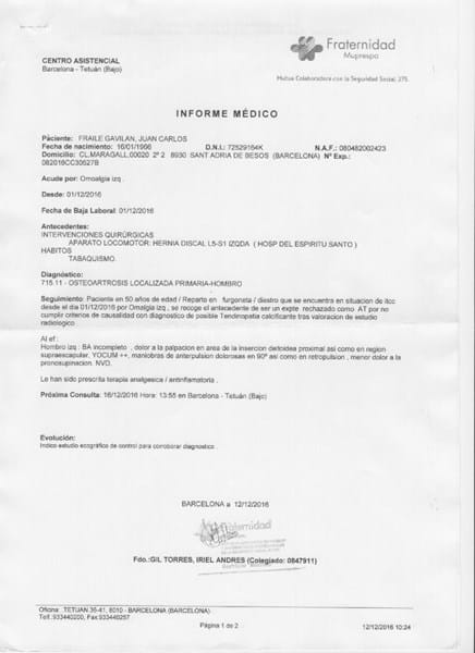 Después de 4 días de molestias en aumento, el 1 de Diciembre de 2016 apareció sobre la articulación de mi hombro izquierdo una inflamación enrojecida, caliente, con febrícula y muy dolorosa, sin haber recibido ningún golpe, ni mal gesto ni esfuerzo. El 22 de Marzo de 2017 otra inflamación sobre la clavícula izquierda, exactamente igual y hacia mediados de Mayo otra de menor envergadura en la zona infra clavicular.