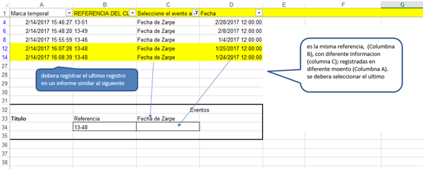 Un informe registra la fecha y hora, referencia de Producto y evento. A partir de estas tres variables utilizo BuscarV para unirlo a Otro informe, de las tres variables la fecha y hora debe reconocerse la ultima registrada, es decir que el registro a tomar es el ultimo realizado. Agradezco si me pueden indicar como hacerlo. Muchas Gracias