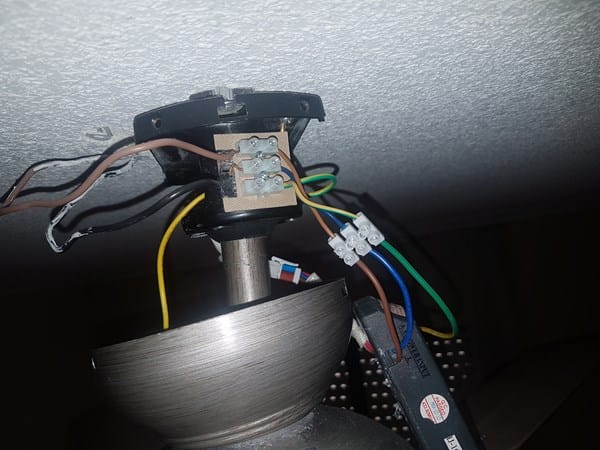 Tengo un ventilador Inspire de Leroy Merlin, concretamente el Cambridge, que funcionaba perfectamente, pero al cambiarlo de domicilio e instalarlo, consigo conectar la luz con el mando pero no la función de ventilador. La única diferencia es que en el nuevo domicilio, la instalación no tiene toma de tierra. ¿Puede ser debido a esto? Adjunto una foto de la instalación actual. Tan sólo he conectado los dos cables que van a la ficha puesto que todos los demás van preinstalados, y además funcionaban en la otra casa. Muchas gracias!