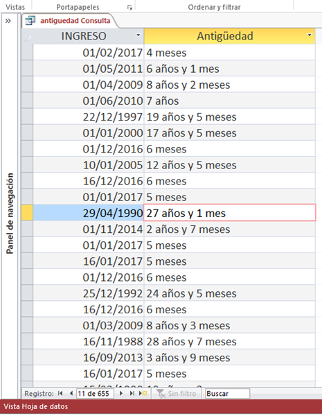 'A) En una consulta: Añades una nueva columna y le pones: DiferenciaFechas: FncDiferenciaFechas ([Fecha1];[Fecha2]) >> Fecha1 es la mas ANTIGUA