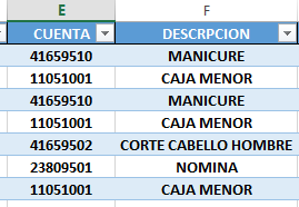 Tengo esta tabla la cual quiero filtrar por cuenta, pero que si yo en un formulario coloque 4 y me filtre todas las cuentas que comiencen por ese número.