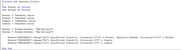 Tengo una duda con respecto a un código que vi en este mismo foro, de un filtro en vba el cual me tomaba una fecha inicial y una fecha final y me filtraba un tabla especifica. Quiero saber si este mismo código puedo implementarlo de la siguiente manera: Que filtre con solo darle un dato en especifico, me explico: