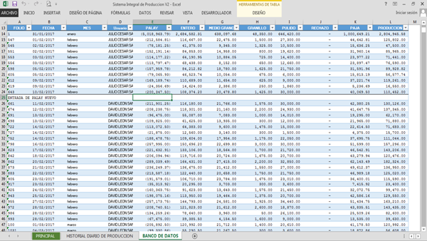 En esta tabla almaceno información referente a todas las producciones generadas de manera diaria.