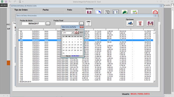 La idea es que a través de un userfrom donde muestro todos estos registros pueda filtrar esta tabla y solo mostrar el rango de fecha seleccionado.