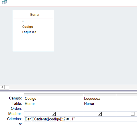 Necesito sacar una consulta donde todo lo que tenga .1 se filtre para poder realizar un informe el tema es que no se como decirle a access que filtre todo lo tenga [.1]