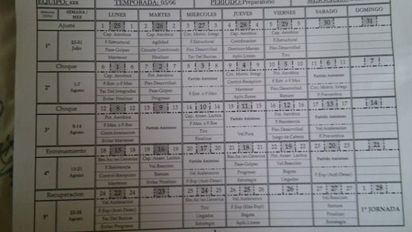 Bueno en principio te mando lo que seria una pretemporada de un equipo profesional como referencia.