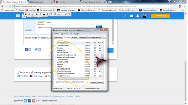 Nada que me actualize la bios de mi portátil nuevo, y a partir de ahí note actualizaciones de windows y veo ahora en los procesos de administración de tareas que todos son a 32 bits, ni uno encuentro a 64 bits, ¿qué ha pasado? ¿Es normal?