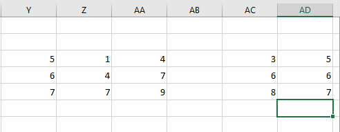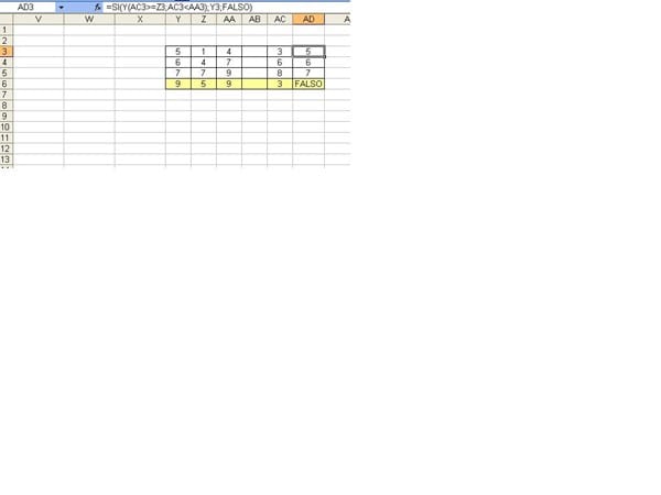 Las columnas Z y AA son rangos (inferior y superior) y la columna AC es un número que debo ver en que rango se ubica por ejemplo el 3 de AC se ubica entre 1 y 4 por ello está el 5 (que se halla en la columna Y). El número de AC debe ser >= al de Z y < al de AA.