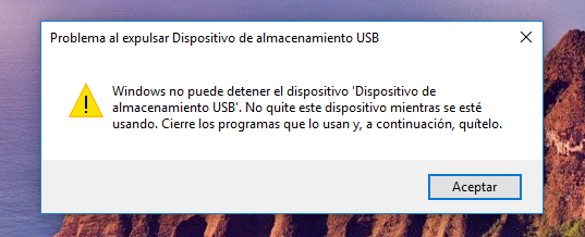 Tengo un problema cuando trato de expulsar un disco duro, ya que me sale este mensaje y no me deja expulsarlo.