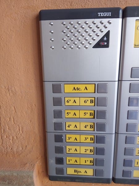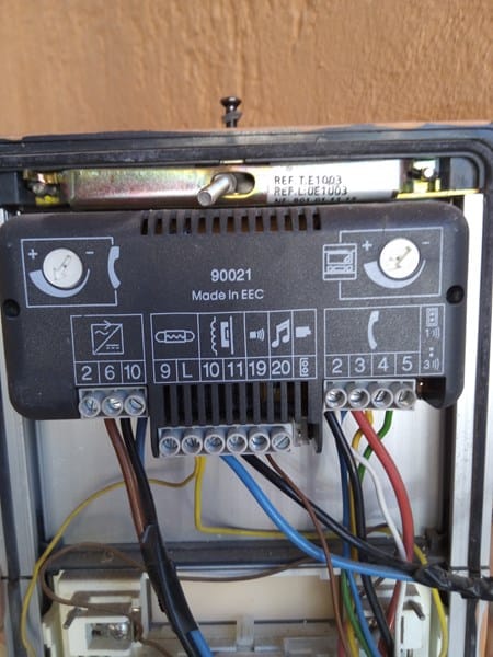 En el edificio hay dos placas con grupo fónico tegui, una es para pasar la reja en la calle y la otra esta dentro en el portal. En la que esta en la calle que creo es la secundaria cuando hablan desde los telefonillos a la placa desde todos los apartamentos se escucha muy bajo. Regule el volumen casi al máximo y se escucha igual, muy bajito, se ve que es una falla en el altavoz del grupo fónico, ¿hay algo que se pueda hacer o alguna medición? Además no encienden las bombillas de los tarjeteros y la medición entre bornas 2 y 6 me dio 11v. Y el cableado hacia las bombillas esta bien y las bombillas también. ¿Habría qué cambiar el grupo fónico? En el caso que así sea, ¿cómo se quita? Creo por detrás de la placa, ¿va a presión? Les paso fotos, muchas gracias, un saludo