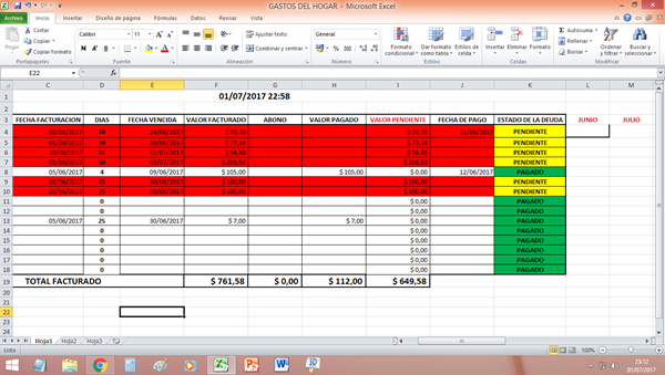 Tengo un valor total en la columna y fila I19, en la columna J fechas de pagos y en la columna L el mes, lo que quiero es formular para que cada vez que llene el cuadro se coloque el total de I19 segun la fecha en el mes que corresponde, si me pueden ayudar les que do muy agradecido, gracias.