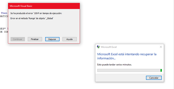Es una macro que se ejecuta cada que haga un cambio a una celda o eso es lo que intento hacer y si hace el cambio pero de inmediato excel deja de funcionar y me manda el error