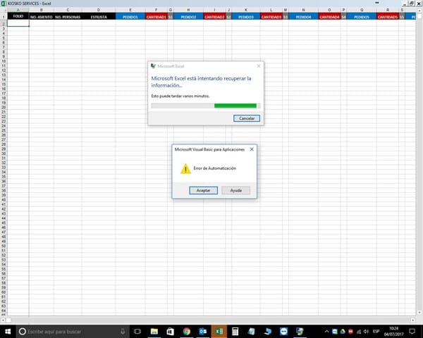 Tengo un formulario bastante grande en Excel (elección de alimentos) que al abrirlo desde un botón me saca el error de "Error de Automatización" y posteriormente me cierra el Excel, pero si el formulario lo ejecuto desde Visual Basic si lo abre; quien pudiera ayudarme con gusto le envío el archivo para su revisión. Gr
