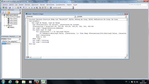 Quisiera saber si se puede hacer una macro que ejecute un sonido diferente (por ejemplo una nota musical) por cada numero que hay en una columna. Los números son del 1 al 7 y están de manera aleatoria (al azar).