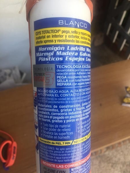 Por algún motivo, al ser usada se mueve el agua y ha comenzado a caerse entre 15-20 piezas de gresite al día. Tras 100 piezas caídas decidí pegarlas una a una en plan buzo. El pegamento elegido es este: