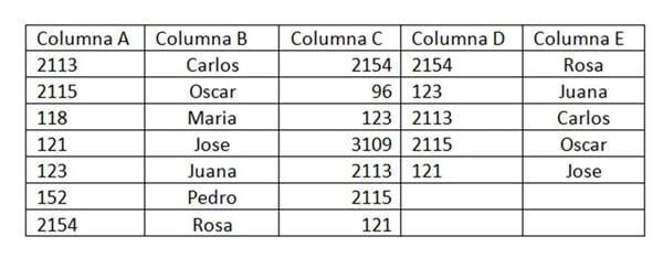 Macro excel VBA que compare dos columnas A y C, cuando A = C copiar el valor de la columna A y B y pegarlo en la columna D y E