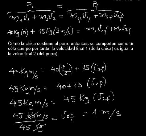 Judith (40.0 kg de masa) se para sobre hielo resbaladizo y atrapa a su perro (15 kg de masa) saltarín, Atti, que se mueve horizontalmente a 3.0 m/s. ¿Cuál es la rapidez de Judith y su perro después de atraparlo?
