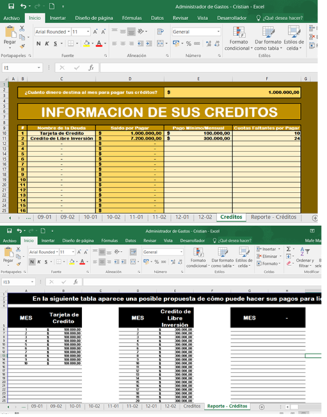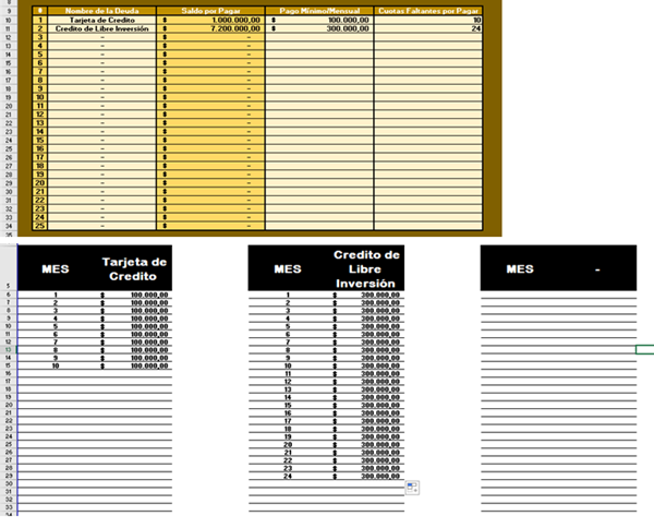 Para todos los expertos muy buenas noches, tengo el siguiente problema en Excel, en la hoja1 tengo el cuadro amarillo y en la hoja2 tengo el cuadro Blanco. Quiero que al digitar un valor en la primera celda donde aparece la columna "Cuotas faltantes por pagar" de la hoja1, me aparezca en la hoja2 la secuencia del 1 al numero que digite en el primer cuadro y de la misma manera me aparezca en la siguiente columna del cuadro blanco (Hoja2) el valor que digite en la celda de la columna "PagoMinimo/Mensual" el numero de veces que puse en la columna "Cuotas faltantes por pagar"; ejemplo: si digito 10 en la hoja1, en la hoja2 (Columna "Mes") me aparezca la secuencia del 1, 2, 3, 4, 5, 6, 7, 8, 9, 10 de manera vertical y al mismo tiempo que en la columna donde esta el guion "-" Me aparezca 10 veces el valor que digité en "PagoMinimo/Mensual"