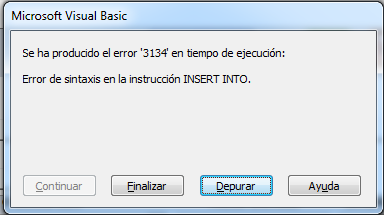 DoCmd. RunSQL "Insert into Clientes (Codigo Cliente, Cliente, direccion, Telefono) Values (ced, nom, dir, tel)"