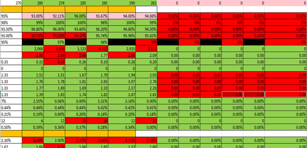 Las celdas rojas indican que las fechas están vencidas y no se cumplieron con los objetivos.