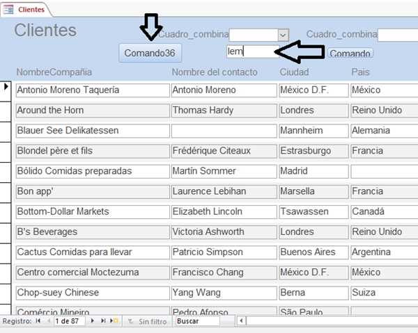 Tengo una consulta que usa el operador Like con comodín. Para utilizar esta consulta tengo un formulario contínuo con un TextBox donde ingreso la palabra (o parte de ella) a buscar y un Comando botón que la ejecuta.