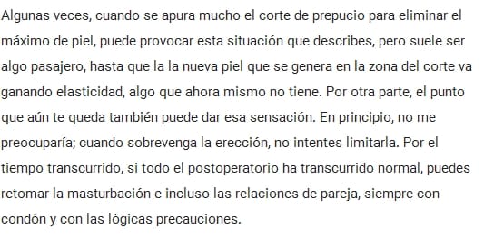Llevo 5 días y la verdad los primeros dos días sangre y hubo bastante molestias y dolor, pero del tercer día para acá, dio un giro de 180°, no tengo dolor, ya puedo ver cómo va cicatrizando la incisión. Mi glande quedó totalmente descubierto y puedo ver que la incisión no es totalmente uniforme ( yo se que es bastante difícil hacerla con una circunferencia exacta jajaja ) pero hay una leve desviación del lado derecho. El lado izquierdo la piel está más cerca del glande que del lado derecho. ¿Con el tiempo se puede corregir cierto? Que gane uniformidad